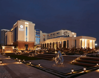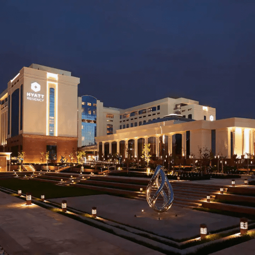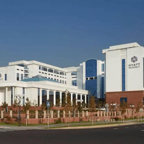 Пятизвездочный отель известной гостиничной сети Hyatt расположился в центре Ташкента в шаговой доступности от метро «Площадь Мустакиллик». Рядом — несколько зеленых парков, большой выбор кафе, ресторанов, магазинов, бутиков. А до международного аэропорта около получаса пути.