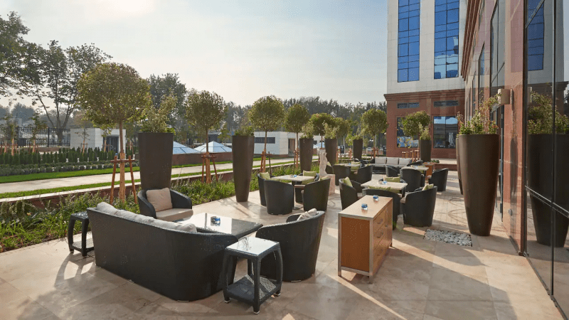 В отеле работает ресторан Khiva с жаровней на углях, казаном и тандыром, в фойе-вестибюле открыт лобби-бар Chai Lounge, а на крыше — ресторан итальянской кухни. Также в распоряжении отдыхающих — крытый бассейн, спа-центр и фитнес-зал. Среди удобств — парковка, служба консьержа и услуги прачечной.